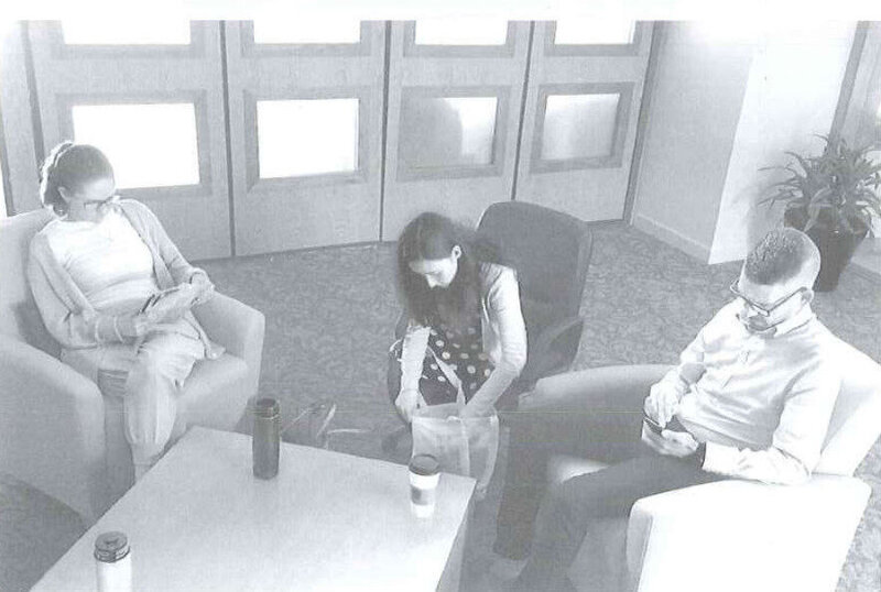 B. Một người phụ nữ đang đưa tay vào túi xách của mình.