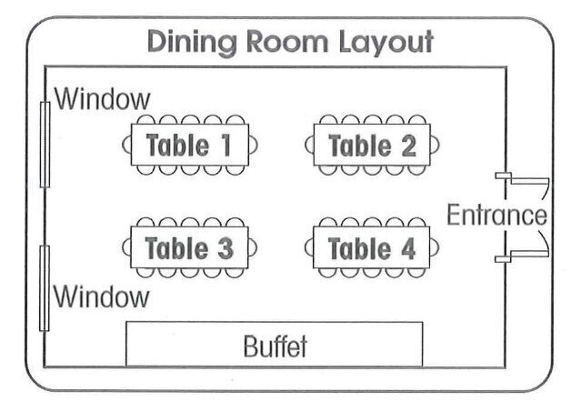 Hello. This is Megumi from Fellmetric Limited. I'm calling about our company's anniversary dinner scheduled for this Friday at your hotel. We need audio equipment set up for the event host. Looking at the dining room layout, I think it's best to set it up next to table by the window that is farthest away from the buffet. One last thing – I've shipped a box of our company's branded vases to the hotel. There should be enough for all the flower arrangements. Thanks.