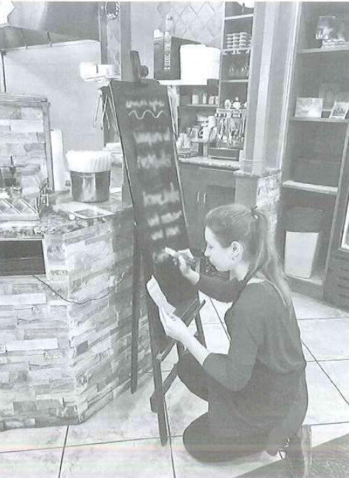 D. Cô ấy đang dọn dẹp một mặt bàn