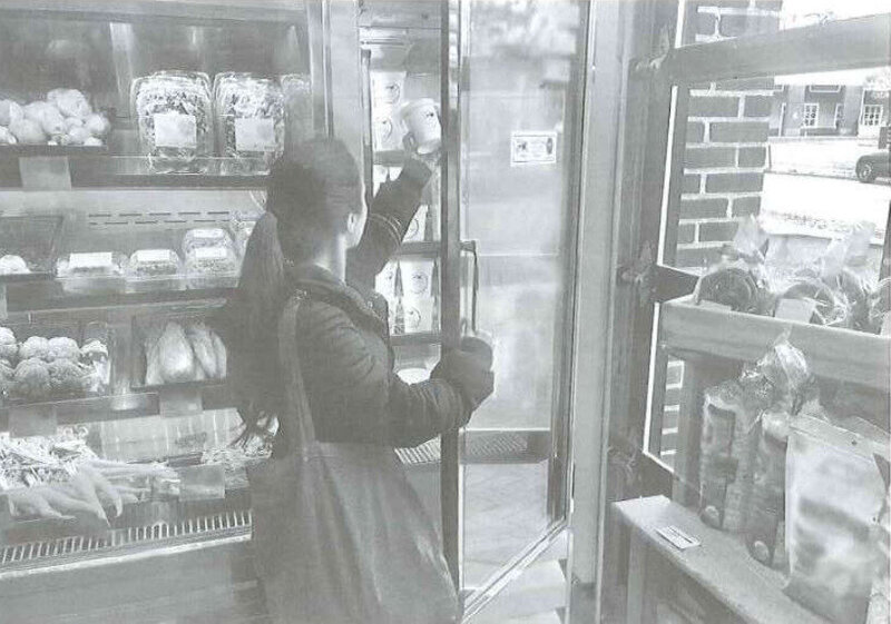 B. Cô ấy đang lấy một món đồ ra khỏi tủ lạnh