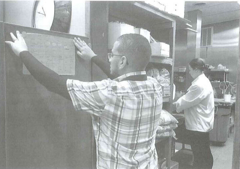 B. Người đàn ông đang vươn tay lấy một cái hộp