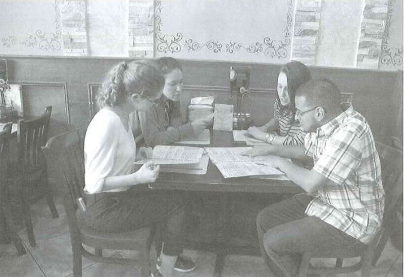C. Một trong những phụ nữ đang phục vụ thức ăn.