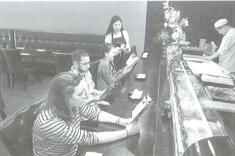 C. Một nhân viên phục vụ đang phân phát thực đơn.