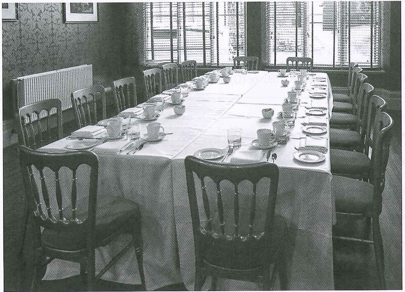 B: Một khu vực ăn uống được chuẩn bị cho bữa ăn.