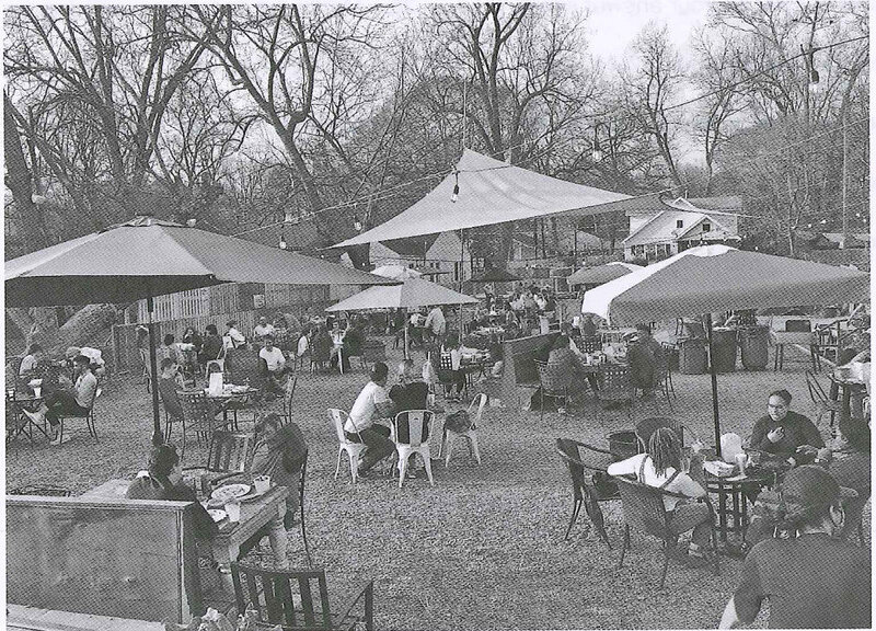 A: Một số người đã tụ tập trong khu vực ngồi ngoài trời.