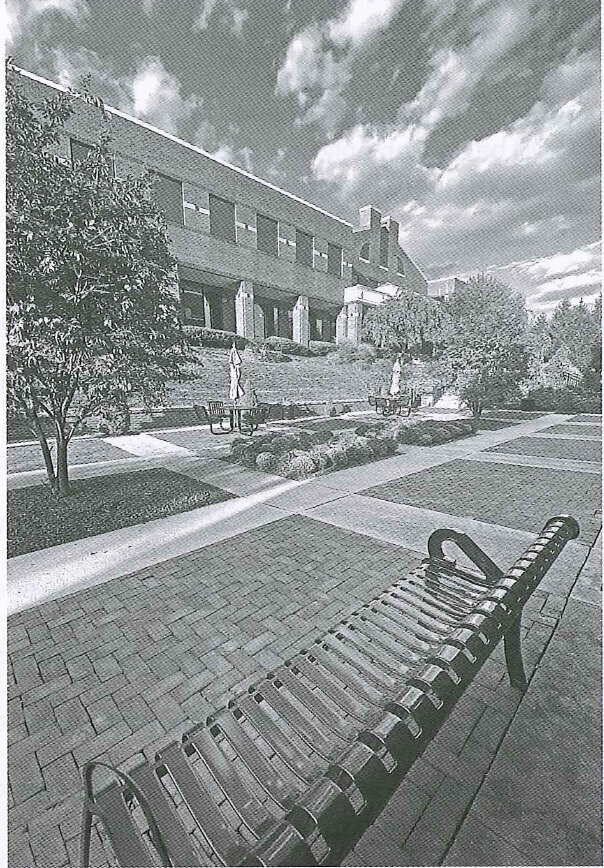 B: Một chiếc ghế kim loại không có người.