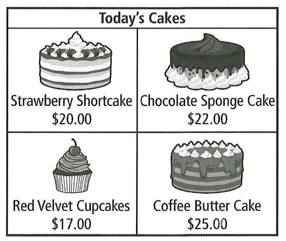 M-Cn We have a cake menu with some different options. Here's what we're offering today.
