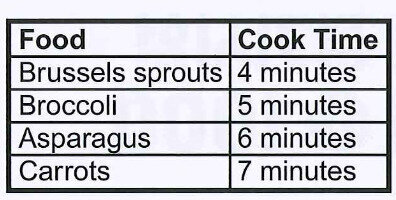 W-Am Good morning! Thank you for visiting our booth at the trade show. Today, I'm going to demonstrate how to use the Gregerson Quickblast to steam your vegetables to perfection. Let's start with some fresh asparagus. For this recipe, you'll need asparagus spears, a tablespoon of butter, a pinch of salt, and water. Bring the water, butter, and salt to a boil. Place the vegetables in the top half of the device. Now, set the timer for the recommended cook time. While we wait, please take a coupon for a twenty percent discount on the Quickblast at any local store.
