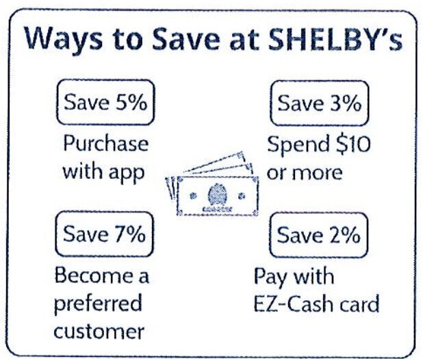 W-Am Sure. That'll be eight dollars. Are you a Shelby's preferred customer?