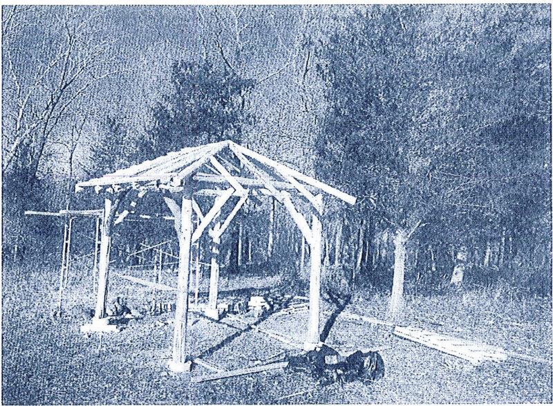Một cấu trúc bằng gỗ đã được xây dựng gần một số cây.