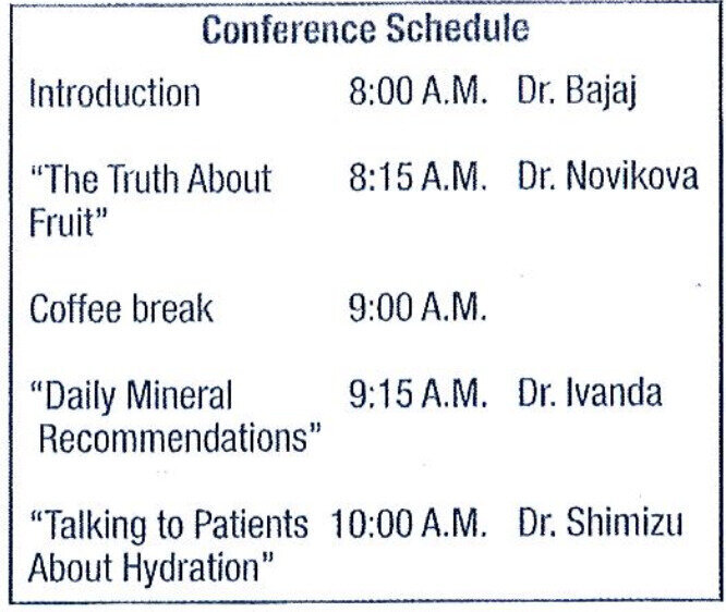Trong lịch hội nghị, Dr. Novikova được liệt kê là người trình bày cho chủ đề "The Truth About Fruit" (Sự thật về Trái cây), phù hợp với nội dung bài thuyết trình được mô tả trong đoạn hội thoại.