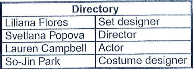 Giải thích: Trong hình ảnh 1, Svetlana Popova được liệt kê là Director (Đạo diễn). Trong đoạn hội thoại, người phụ nữ đang nói chuyện về việc chỉ đạo buổi tập diễn, cho thấy cô ấy là đạo diễn.