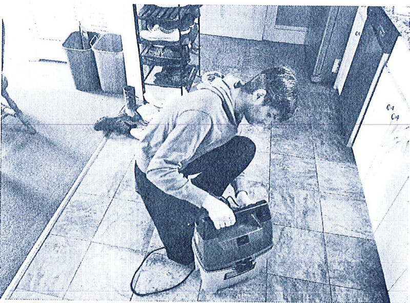 Anh ấy đang cắm dây điện vào ổ cắm tường.