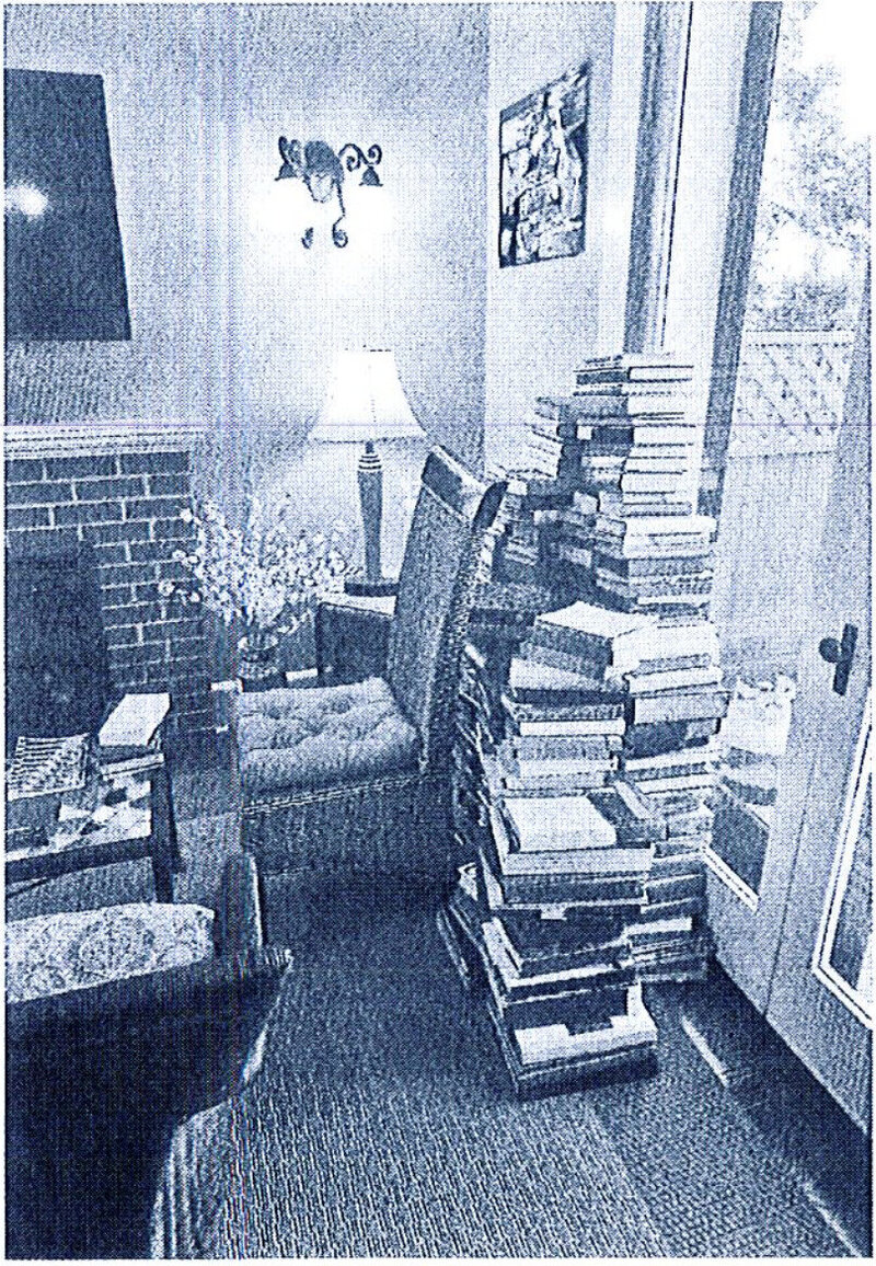 Sách đã được chất đống cạnh cửa kính.