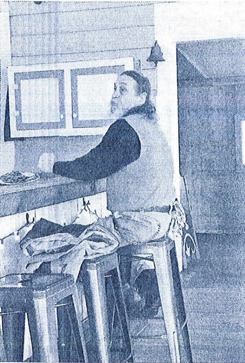 Người đàn ông đang đặt tay lên quầy.