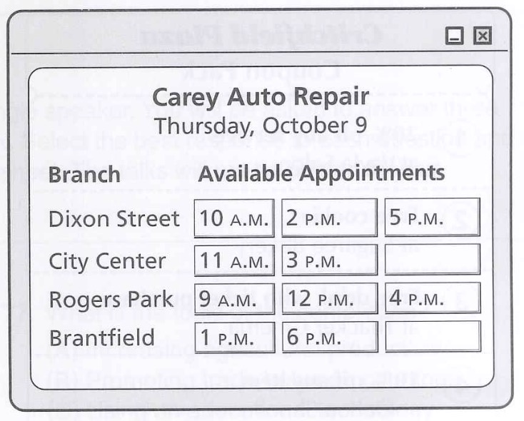2. Trong hình, chỉ có chi nhánh Brantfield có hiển thị lịch hẹn 6 P.M (đã được đánh dấu)