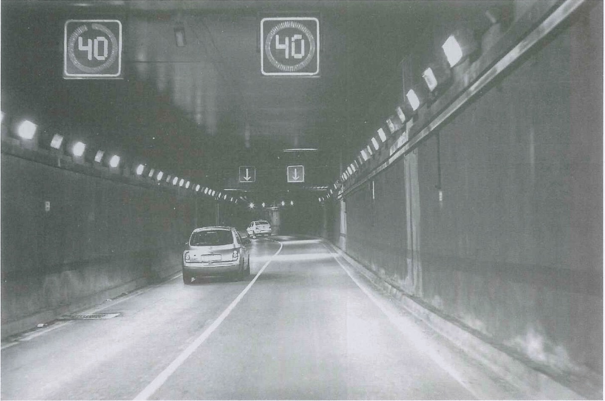 D Có một lối đi bộ trong một đường hầm.