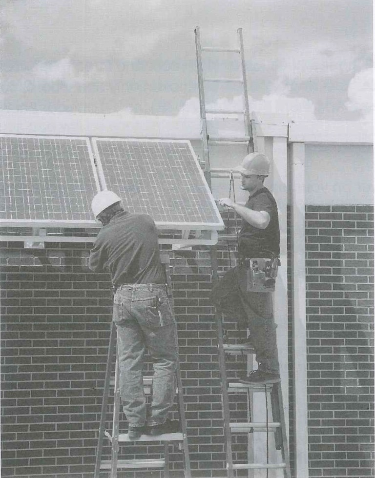 D Các công nhân đang dỡ các tấm pin mặt trời.